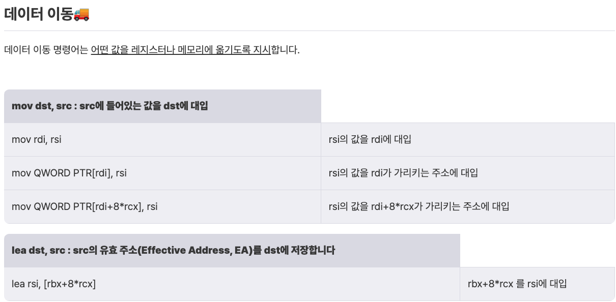 데이터 타입에는 BYTE(1바이트), WORD(2바이트), DWORD(4바이트), QWORD(8바이트)가 올 수 있음